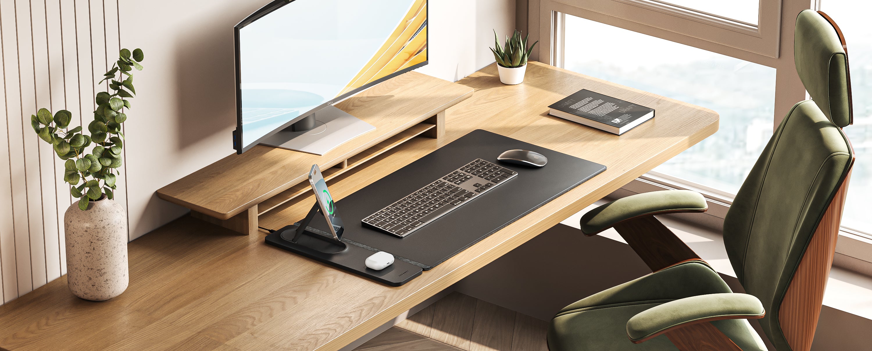 The ALTI desk range extends on these core advantages by wirelessly fast charging your AirPods/iPhone, standing your phone screen for hands-free viewing, and storing idle documents in its interior hideaway space.
