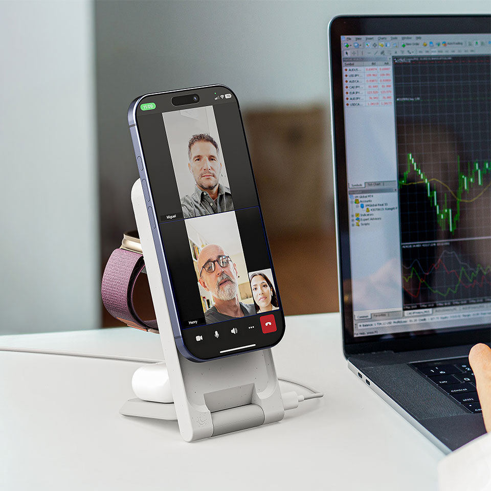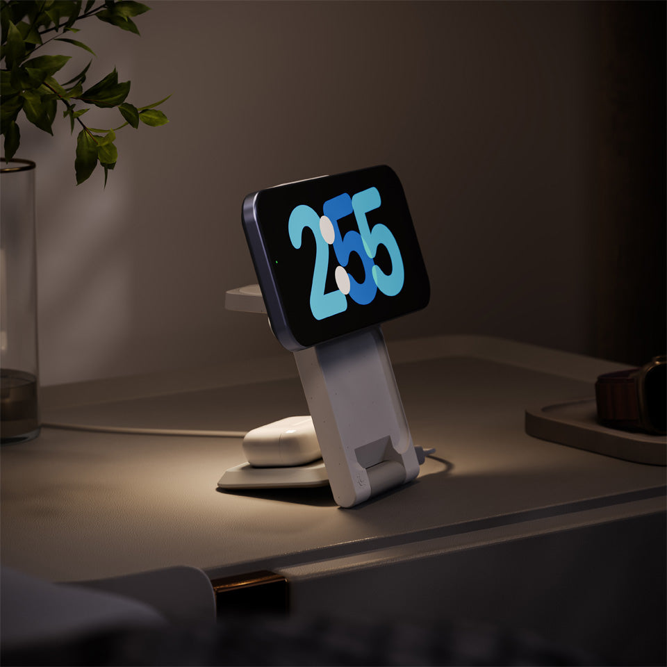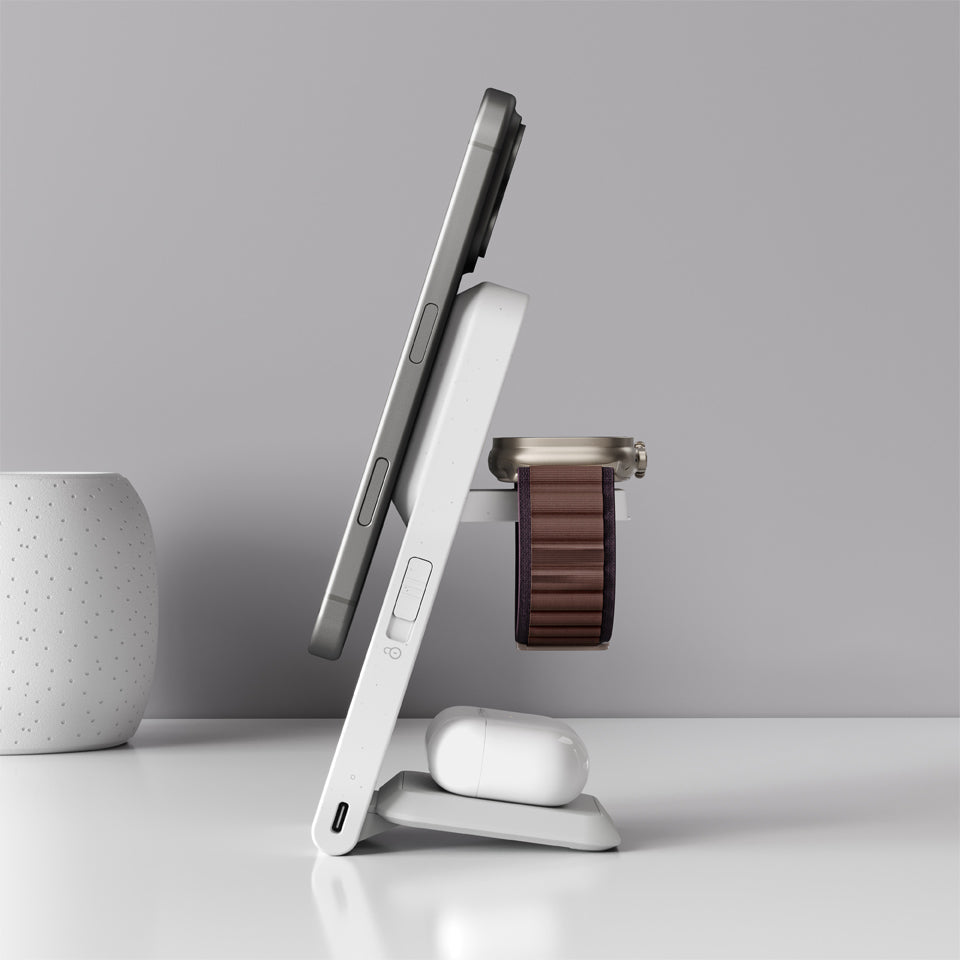 Yes, ARIA delivers 15W fast wireless charging for Qi2-enabled iPhones (iPhone 12 and newer) and fast charging speeds for Apple Watch and AirPods. A 30W wall adapter (sold separately) is recommended for best performance.