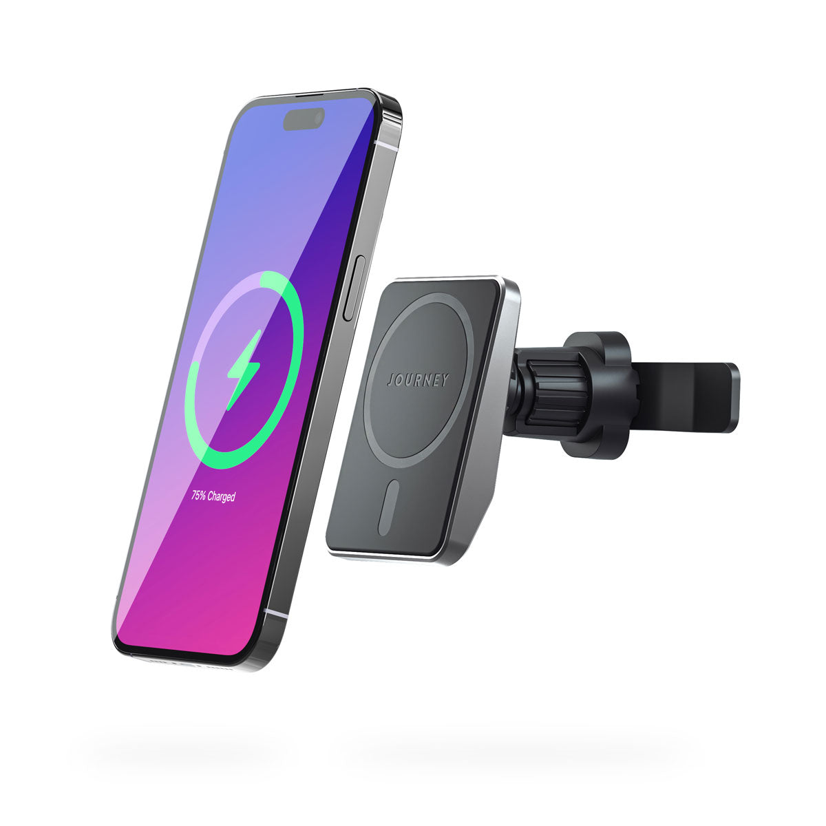 The EXPRESS Wireless Car Mount Charger with MagSafe is a safe and convenient way to keep your phone charged while driving. It features magnetic mounting that works with MagSafe-compatible iPhones, as well as other smartphones. The charger includes both a vent mount and a dash mount, so you can find the perfect spot for your phone. The charger delivers fast charging speeds of up to 15W, so you can keep your phone topped up even on long drives.