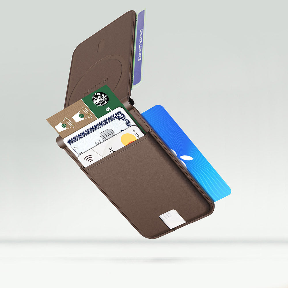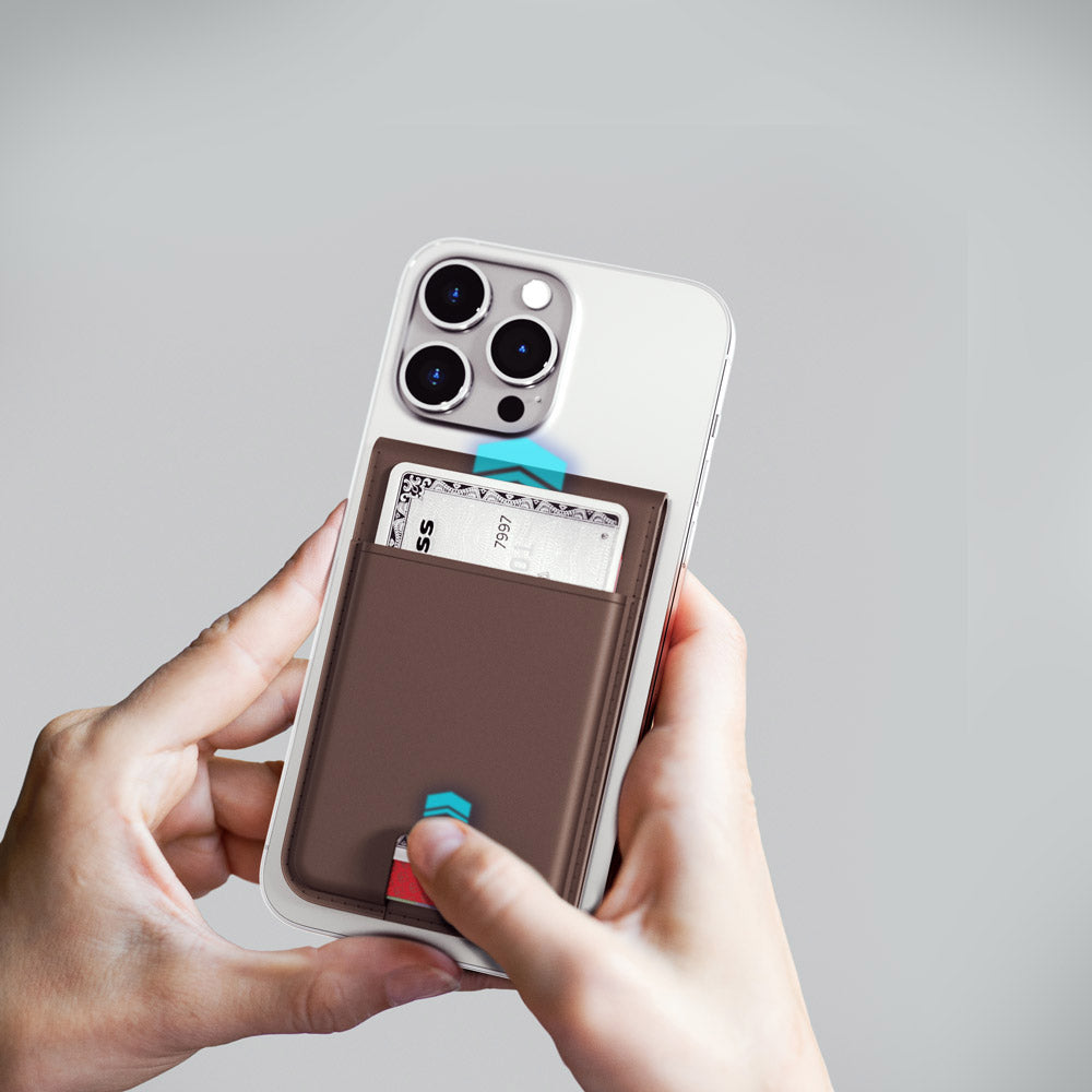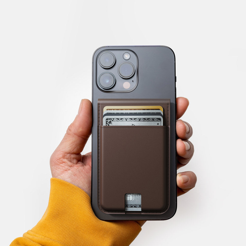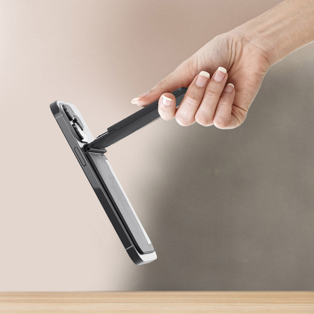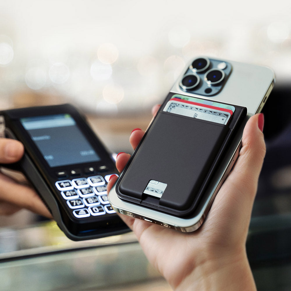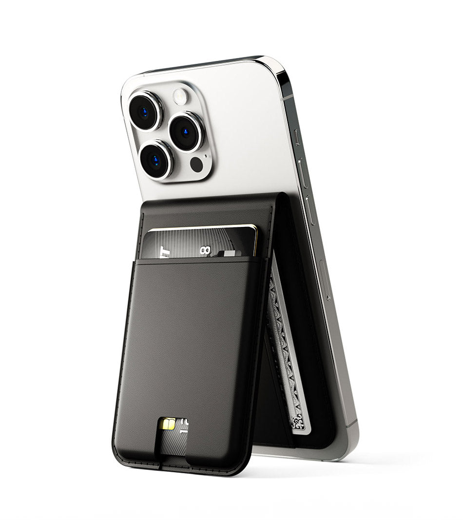 EZMO is a slim, vegan leather wallet that attaches magnetically to your iPhone and stores up to 5 cards. It also doubles as a stand, so you can prop up your phone for hands-free viewing. Made with high-quality materials, this wallet is both stylish and functional.