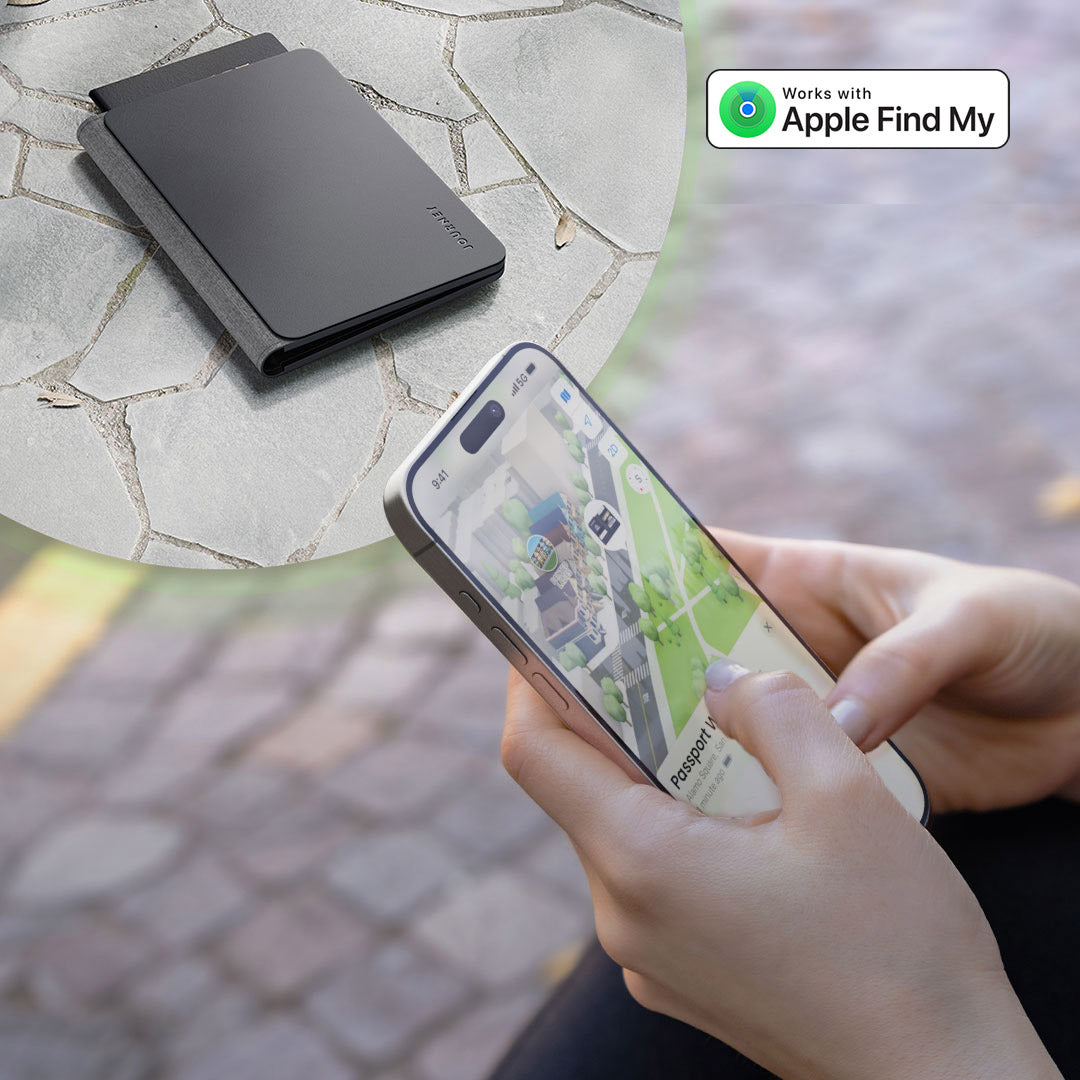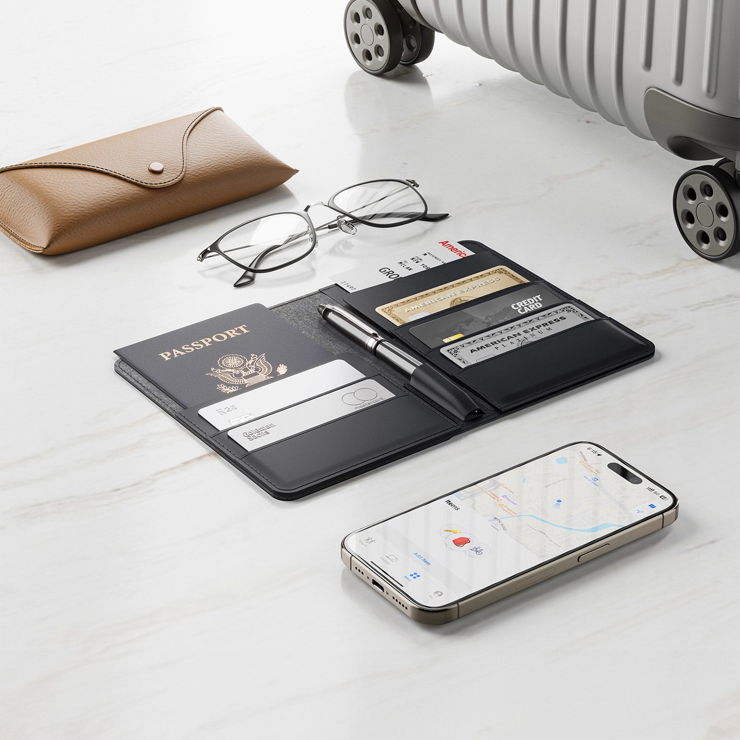 Meet our Loc8 Passport Wallet – your ticket to stress-free travel. With a built-in tracker compatible with Apple's Find My network, your passport is always within reach. Never worry about misplacing it again. Slim and stylish, it securely holds up to two passports, multiple boarding passes, five credit cards, and even has a pocket for your cash. Elevate your journey with peace of mind and practicality – the perfect companion for the modern traveler.