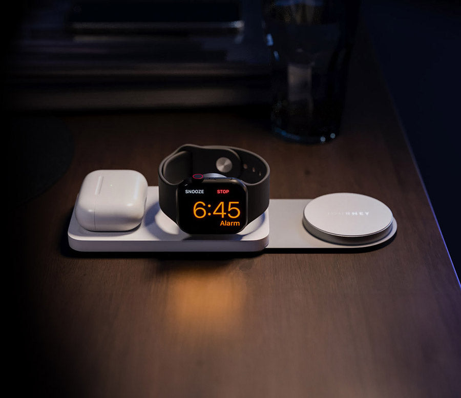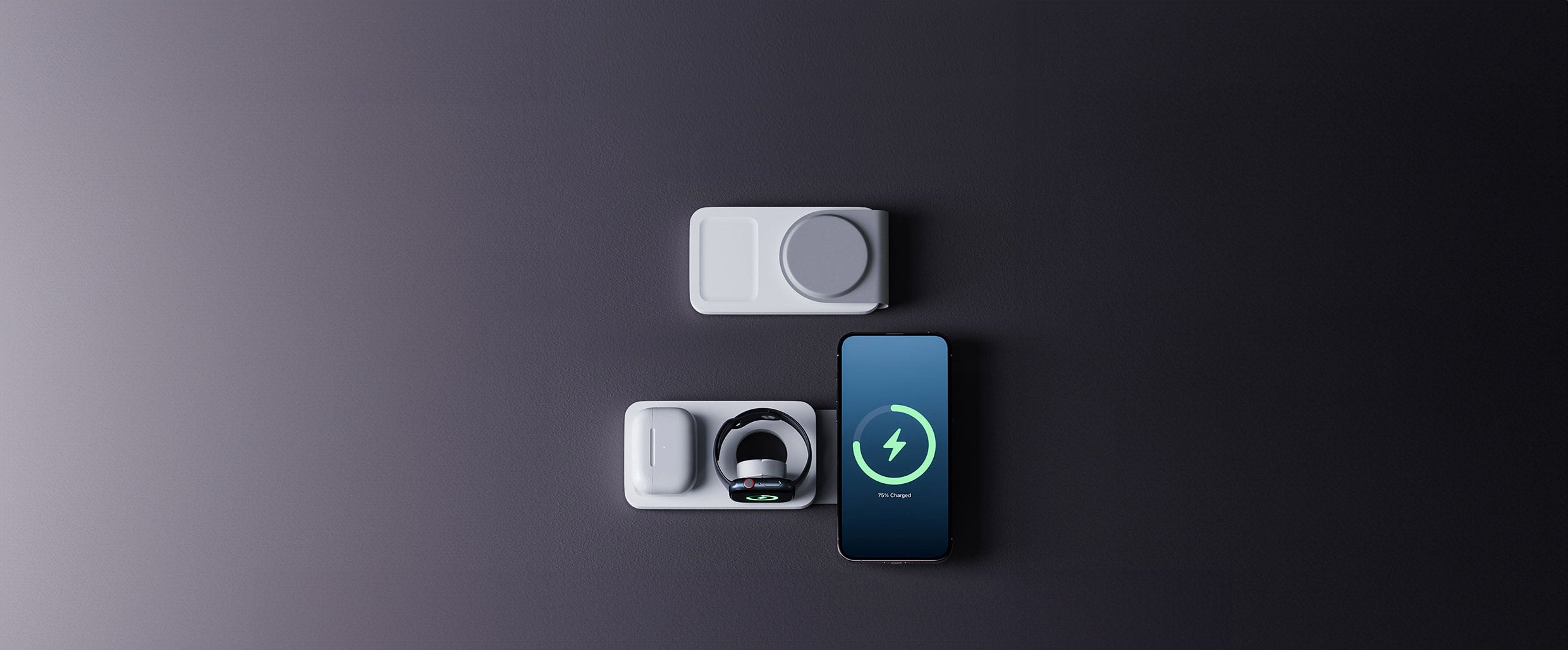 Introducing SWIV, the ultimate convenience in charging: our 3-in-1 wireless charging station. This sleek, foldable device effortlessly powers up your iPhone, Apple Watch, and AirPods simultaneously. Crafted with premium materials and Apple-certified technology, it guarantees safe, efficient, and stylish charging at home and on the go.